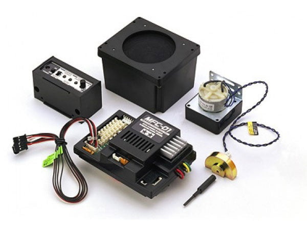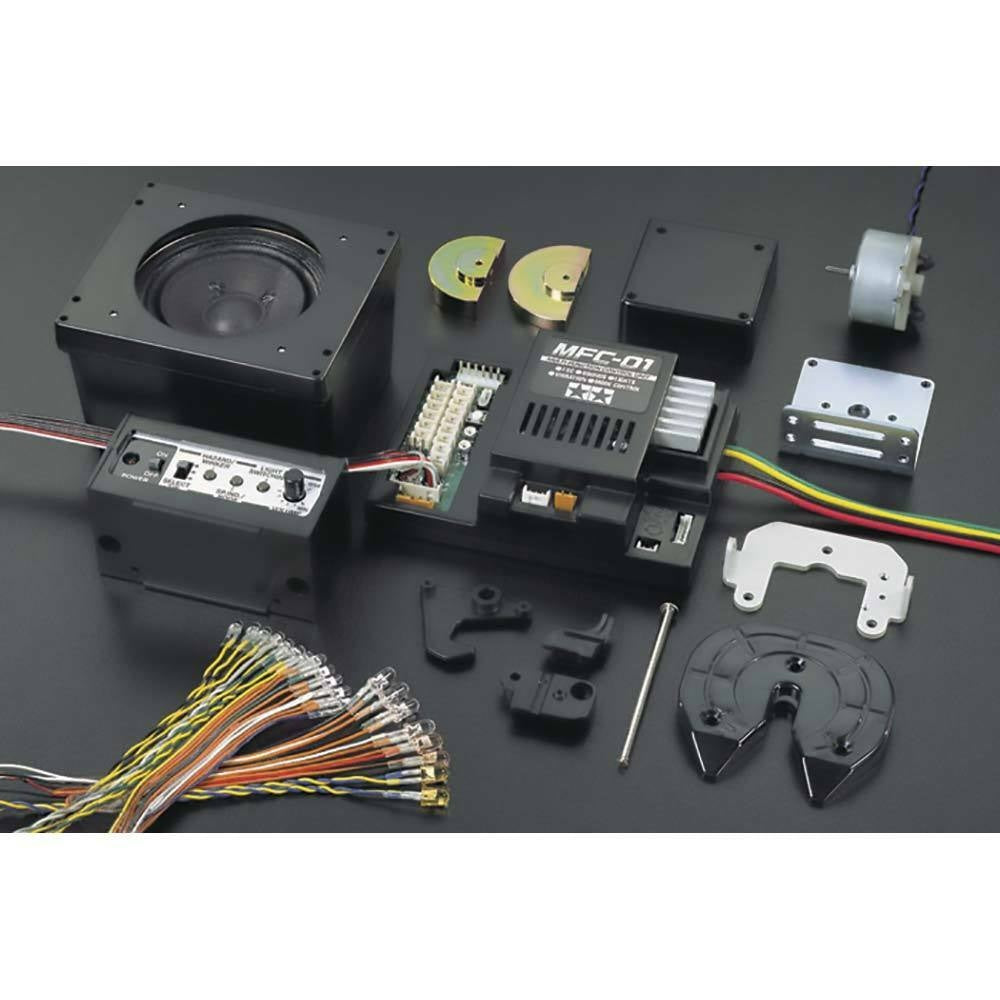 Multi-Function Control Unit (MFC-01) offers lights, sounds, and vibration in combination with R/C truck action, for a truly engrossing R/C experience. Engine sounds have been digitally recorded from an actual truck, and together with air horn, gear shifting, and many other realistic sounds, let you feel like you are driving the real thing. The unit is compatible with up to twenty total LEDs of nine different types: headlights, brake lights, and turn signal operation are also available at your fingertips. It features a built-in electronic speed controller function to allow smooth rides at speeds ranging from very low to standard.
