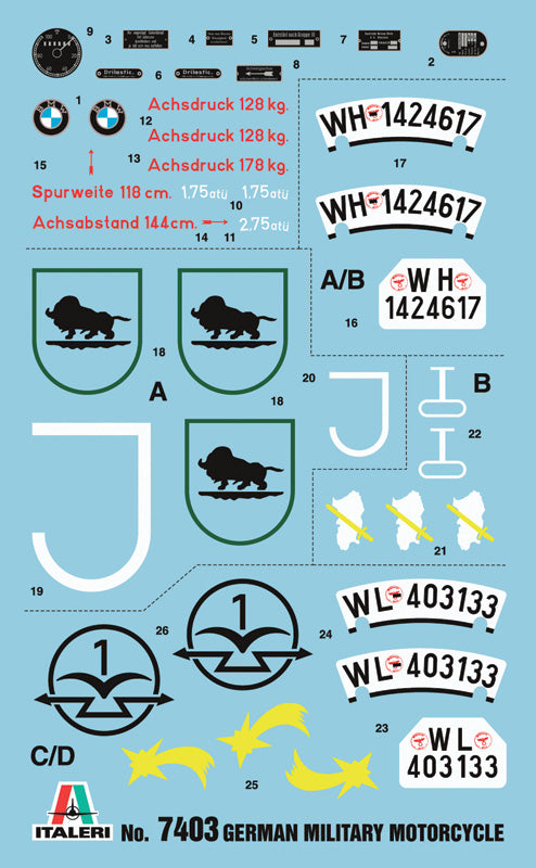 German Military Motorcycle with side car ITALERI 1:9 plastic kit 7403