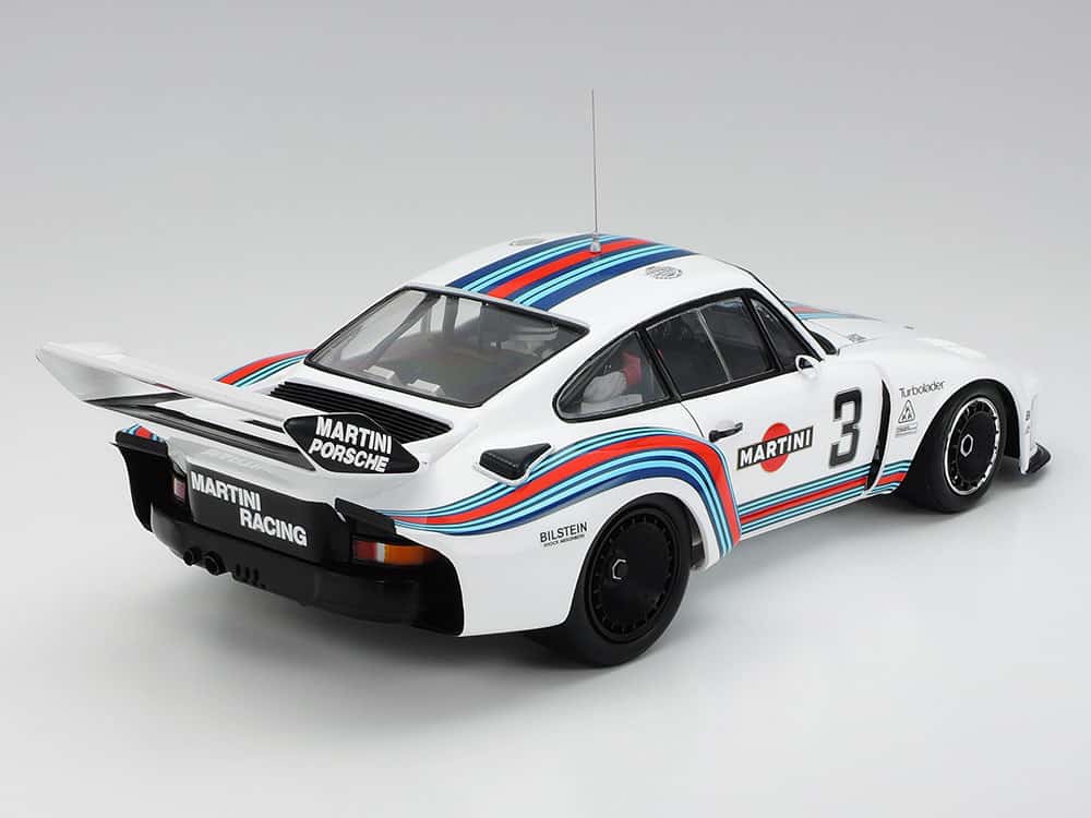 This 1/20 scale model kit recreates the classic Porsche 935 Martini. The kit was first made available as a motorized kit (Item 20005 released in 1977 and 1999). This time, the kit features new Cartograf decals and new solid synthetic rubber slick tires.