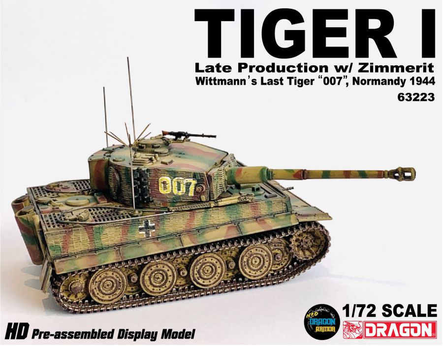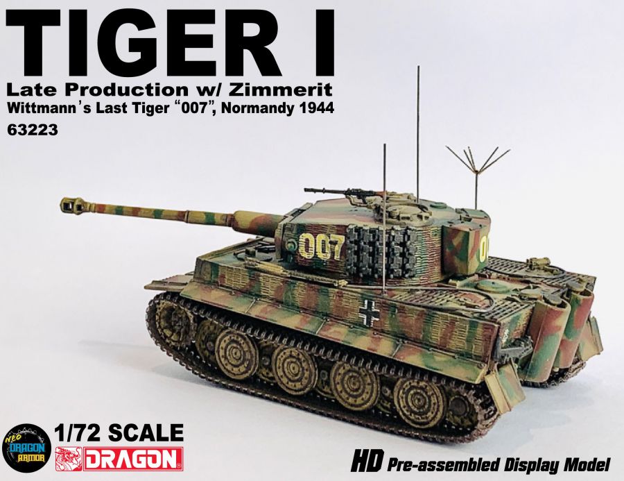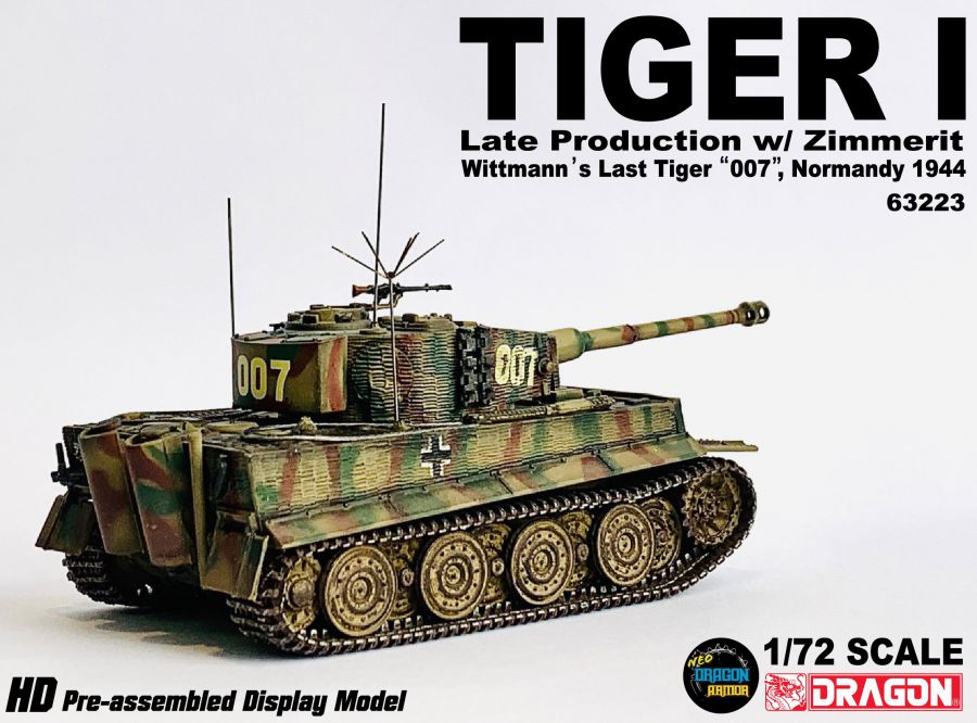 Tiger I Late Production w/Zimmerit Wittmann's Last Tiger "007", Normandy 1944 DRAGON 1/72 63223